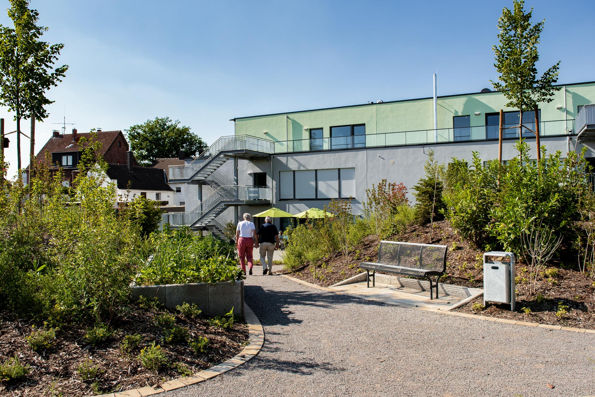 Unsere Wohnanlage ist zentral gelegen, aber mitten im Grünen. Die komplette Infrastruktur ist schnell und unkompliziert erreichbar. Zum Einkaufen oder für die Freizeitgestaltung gibt es zahlreiche Angebote in unmittelbarer Nähe, die keine Wünsche offenlassen.