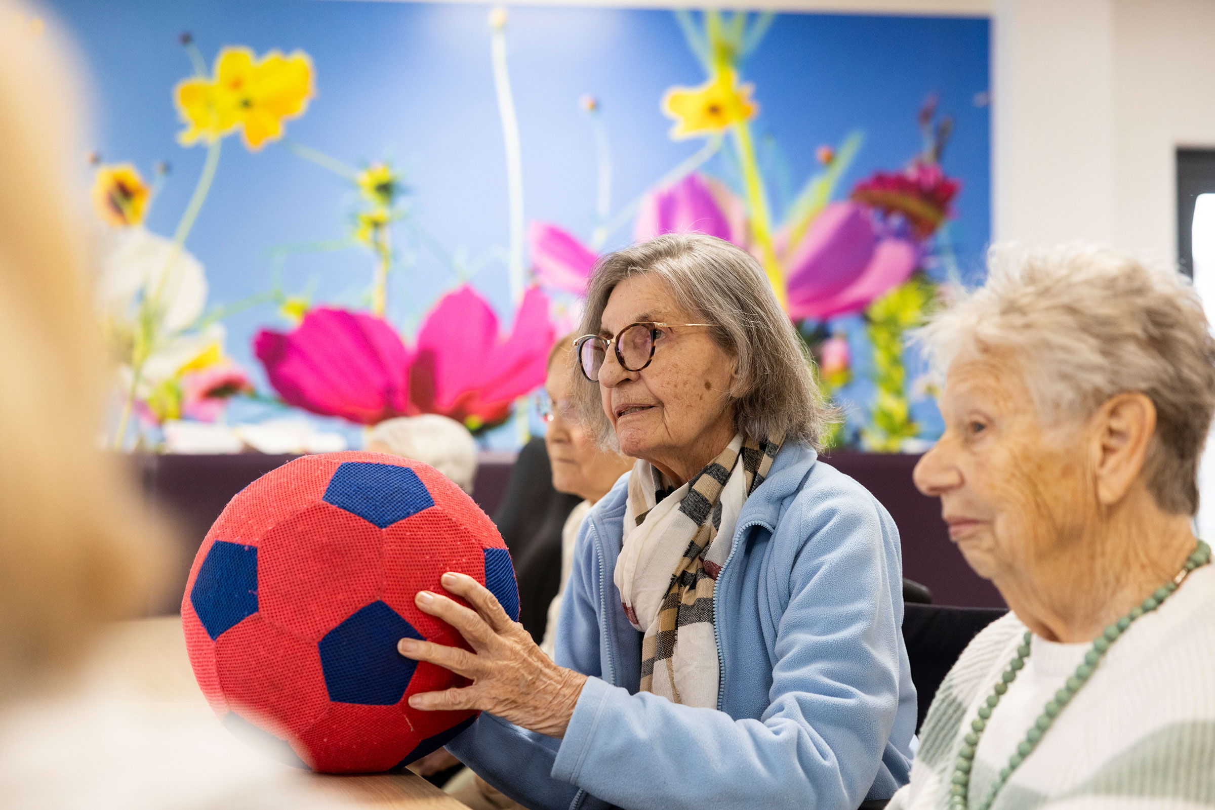 Die Tagespflege befindet sich in der Herzlich & Gerne Seniorenwohnanlage am Asselner Hellweg in Dortmund. Unsere Besucher*innen können dort den Garten und den Streichelzoo besuchen, sich in geselligen Runden treffen, miteinander sprechen oder spielen. Dass das Motto „Sommerwiese“ kein Zufall ist, erkennt man an der fröhlichen Blumendekoration.